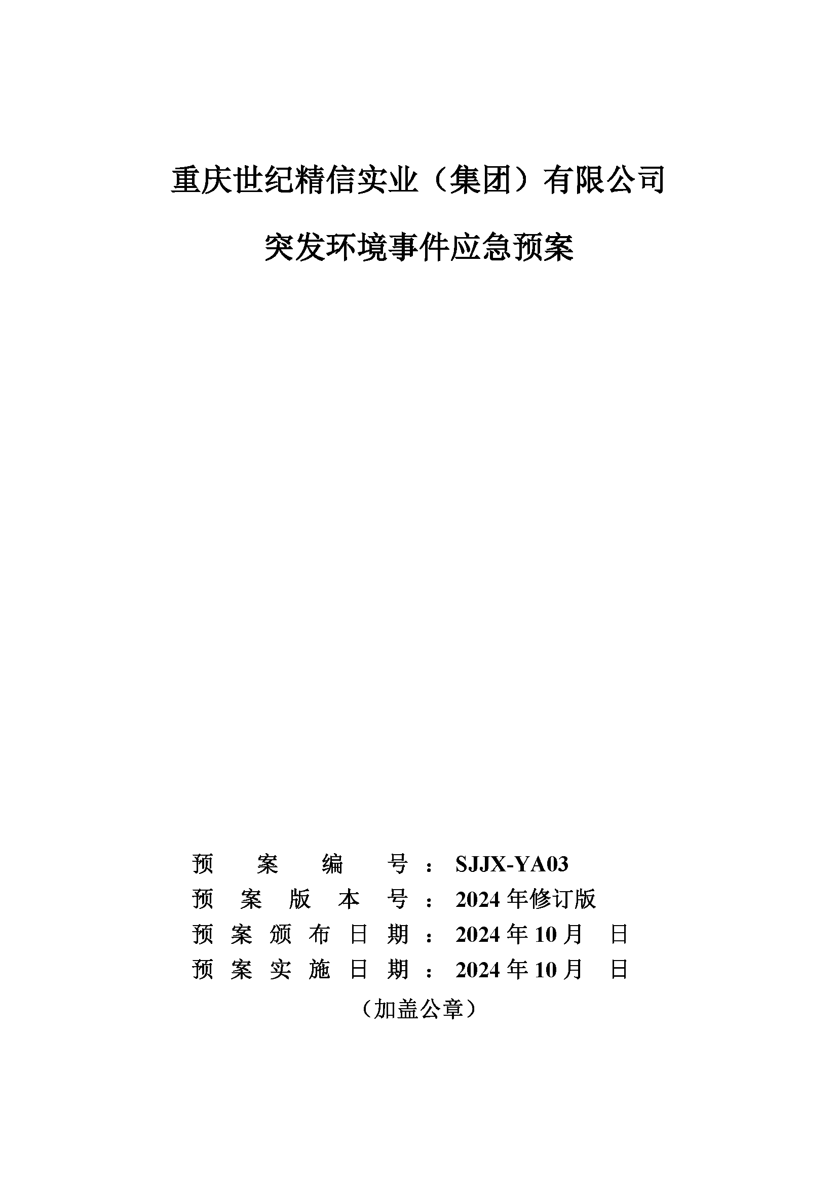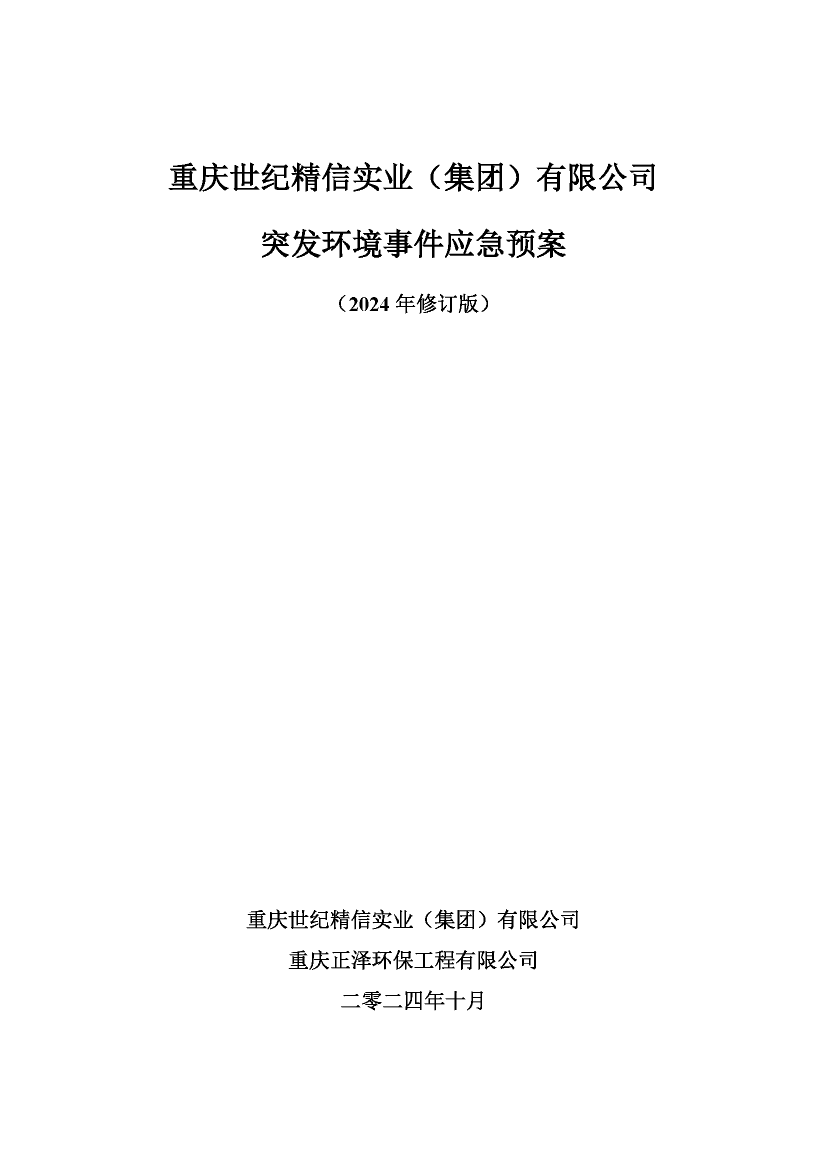 重慶世紀(jì)精信實(shí)業(yè)(集團(tuán))有限公司突發(fā)環(huán)境事件應(yīng)急預(yù)案